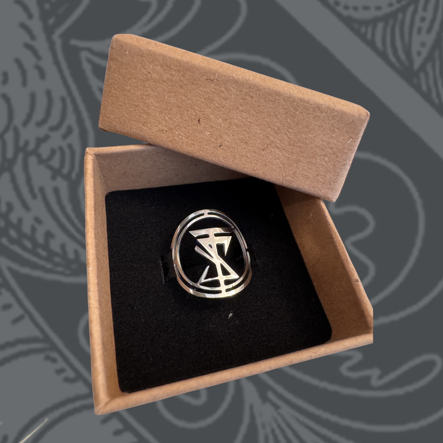 Minimalistický, ale výrazný prsten s precizně vyřezaným logem Forbidden Society